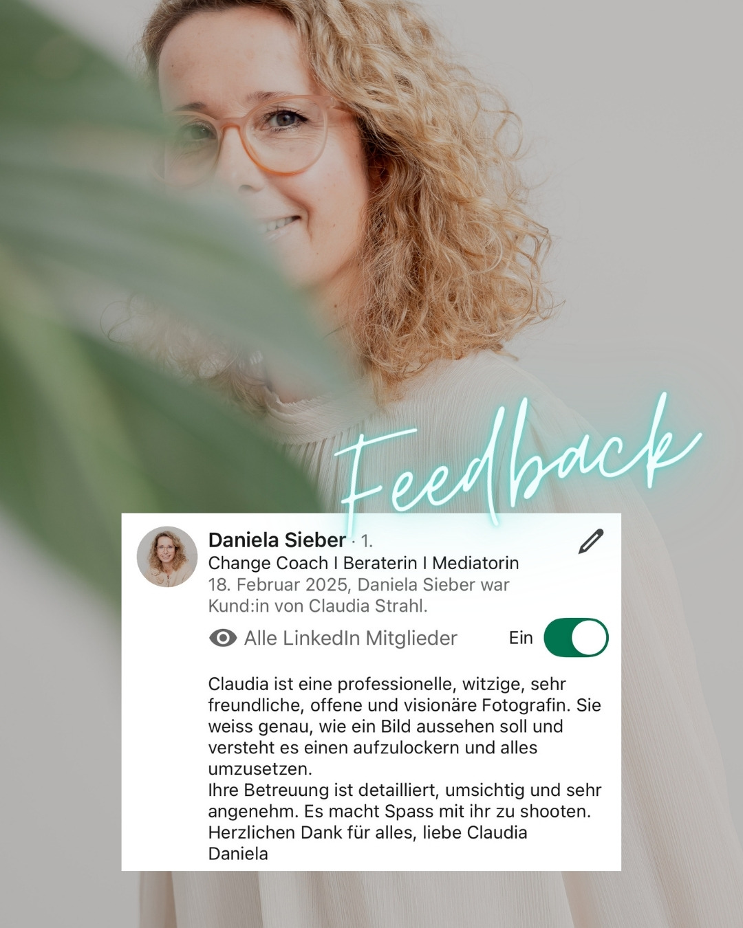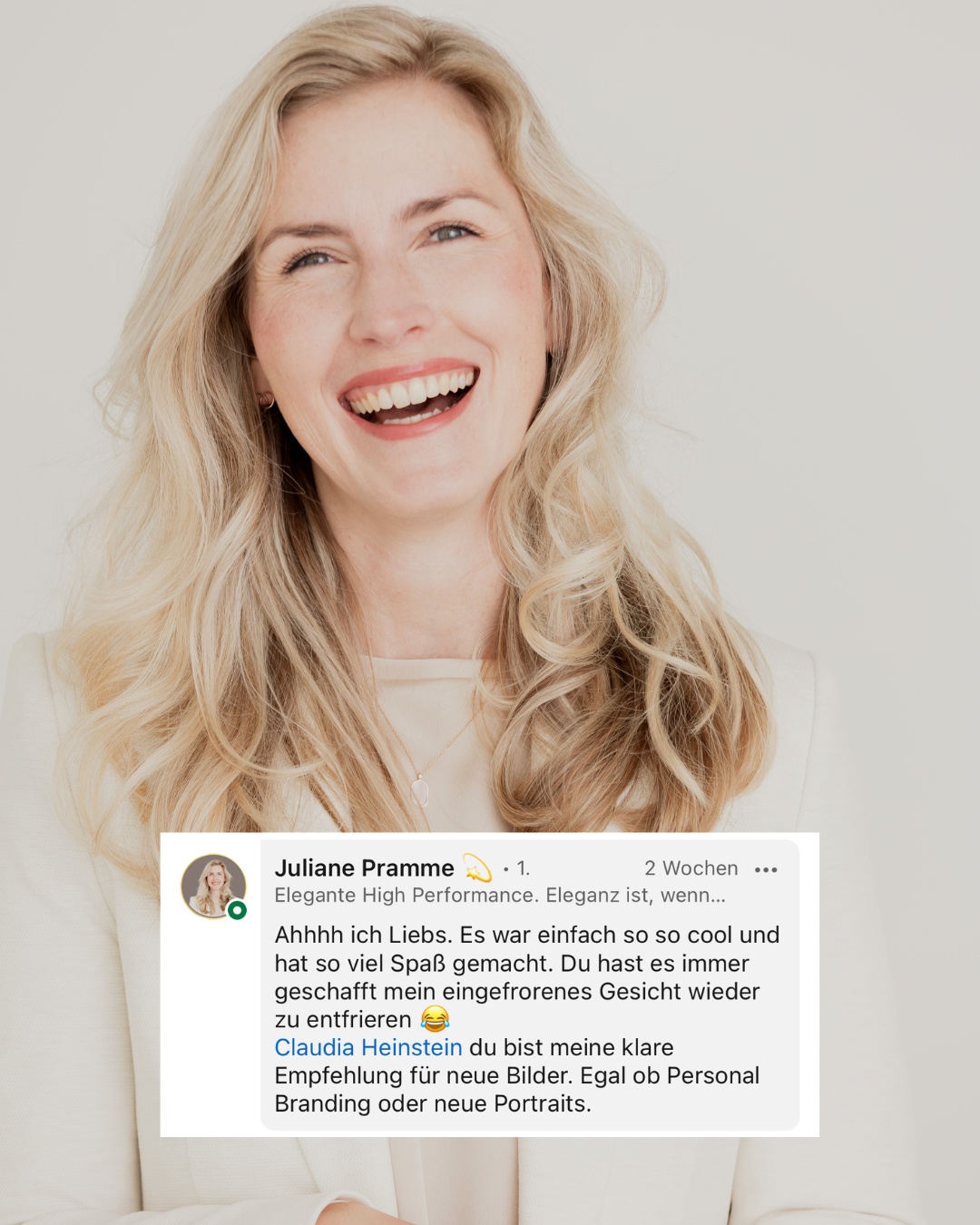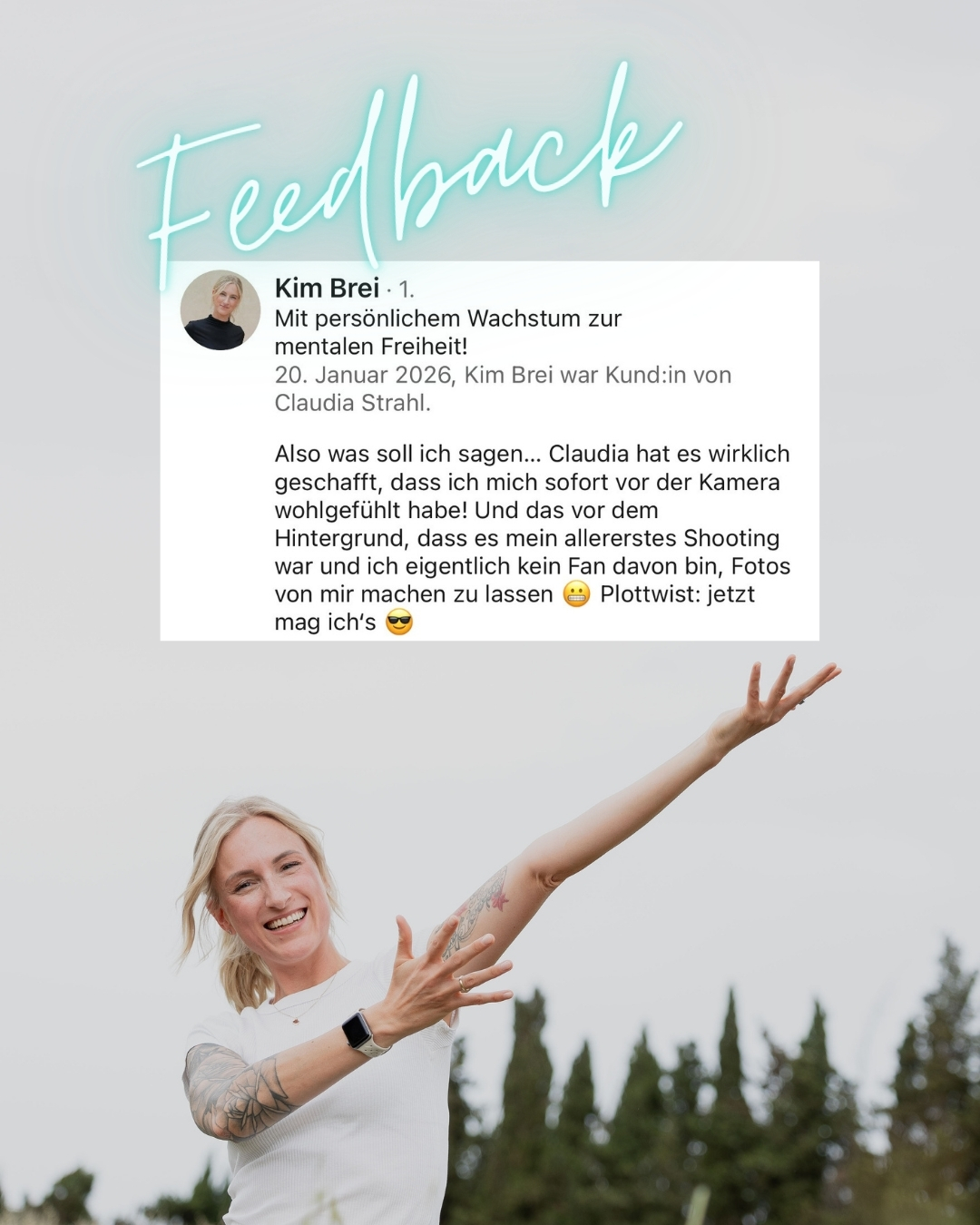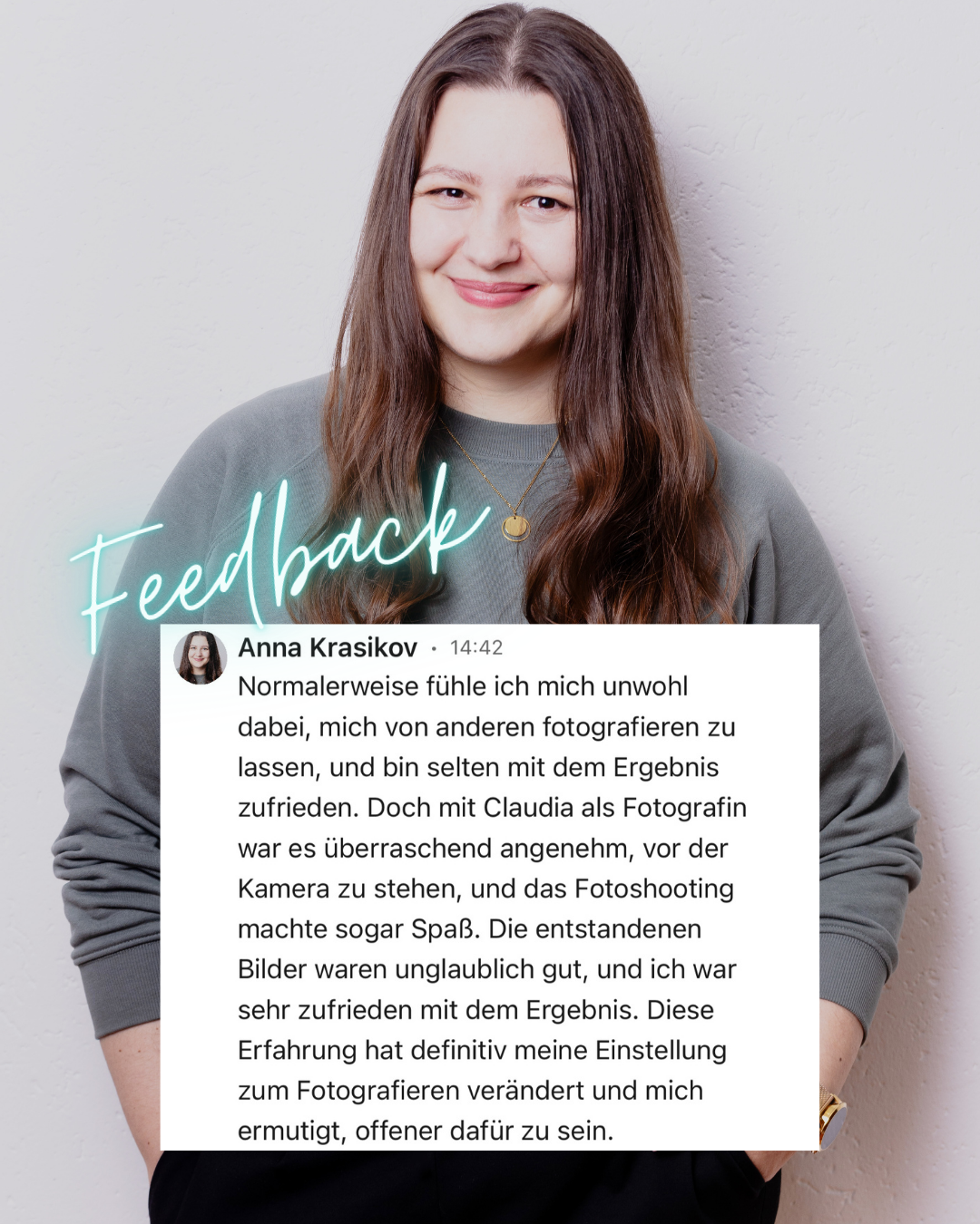 „Claudia hat es mit ihrer professionellen und mega sympathischen Art geschafft, dass ich mich für die Fotos aus meiner Komfortzone bewegte und das alles ohne mich künstlich verstellen zu müssen.
