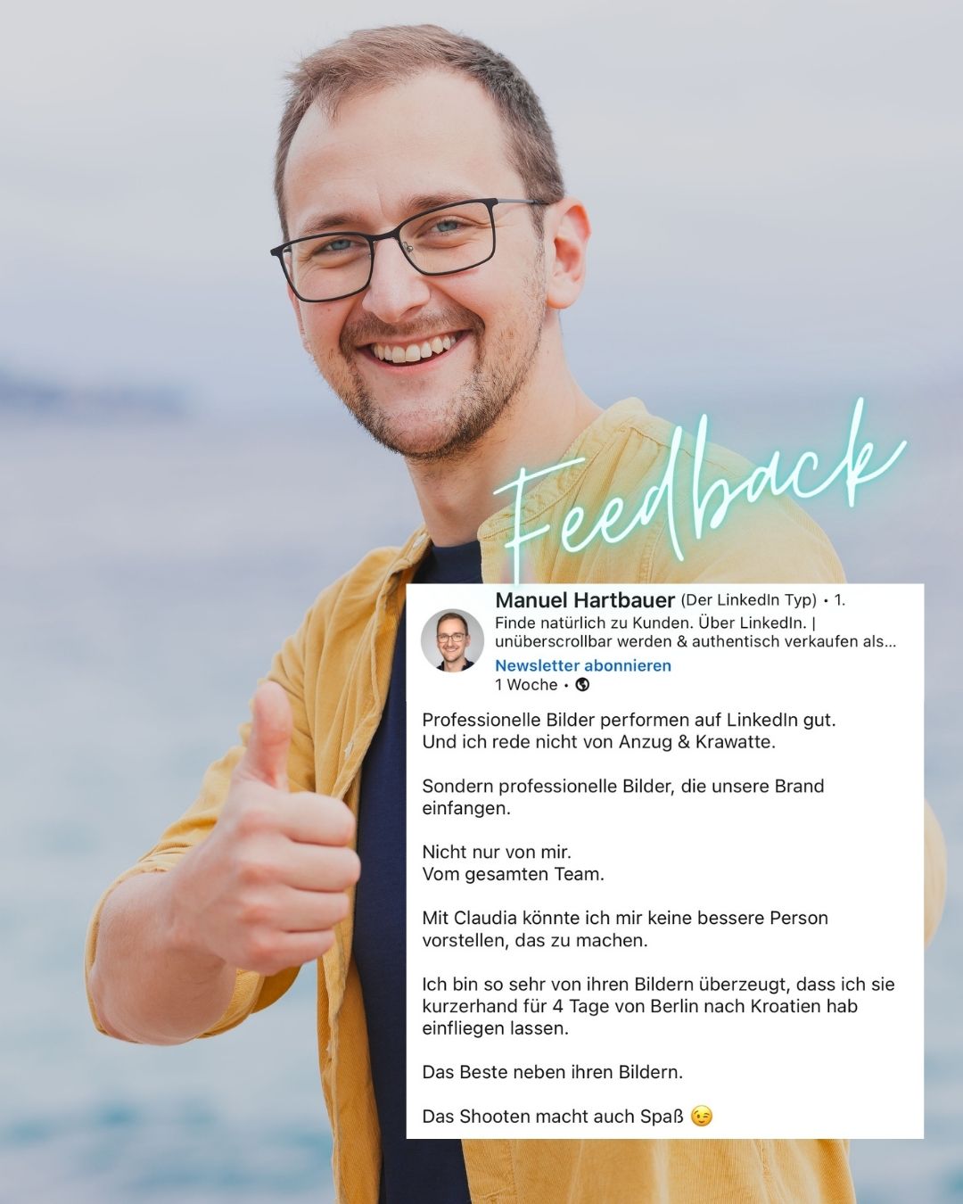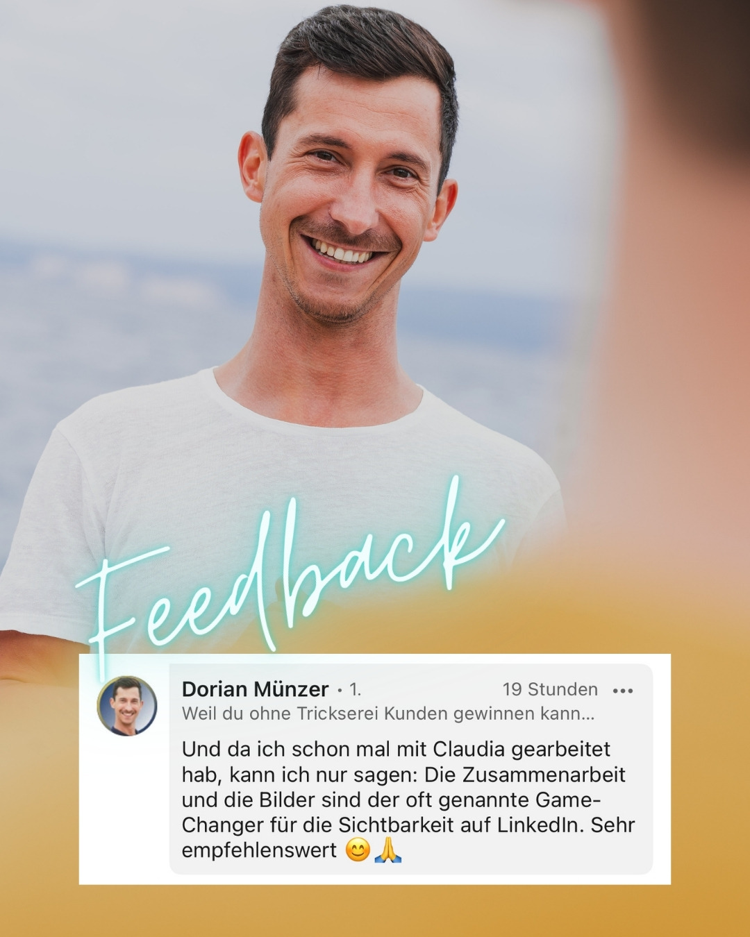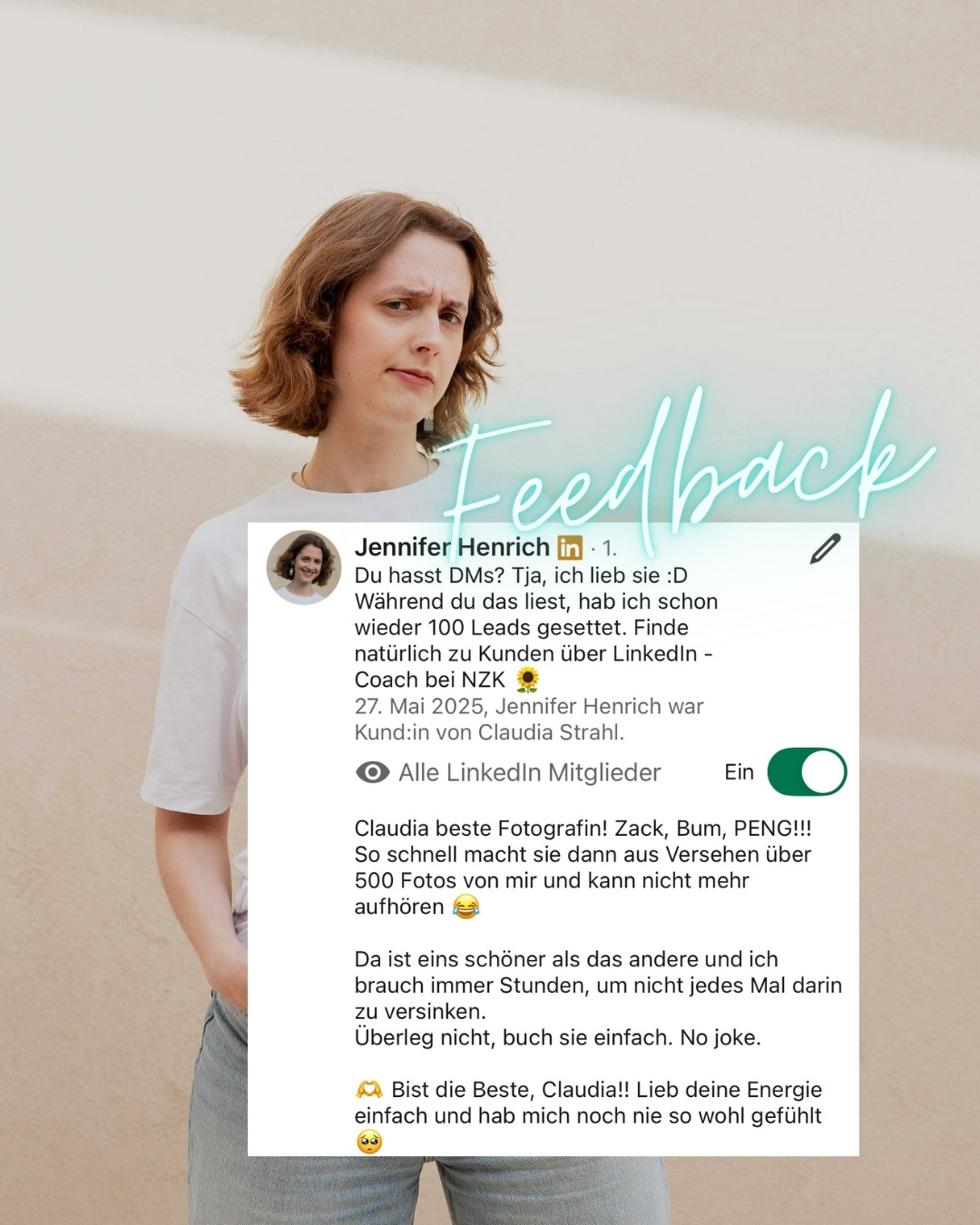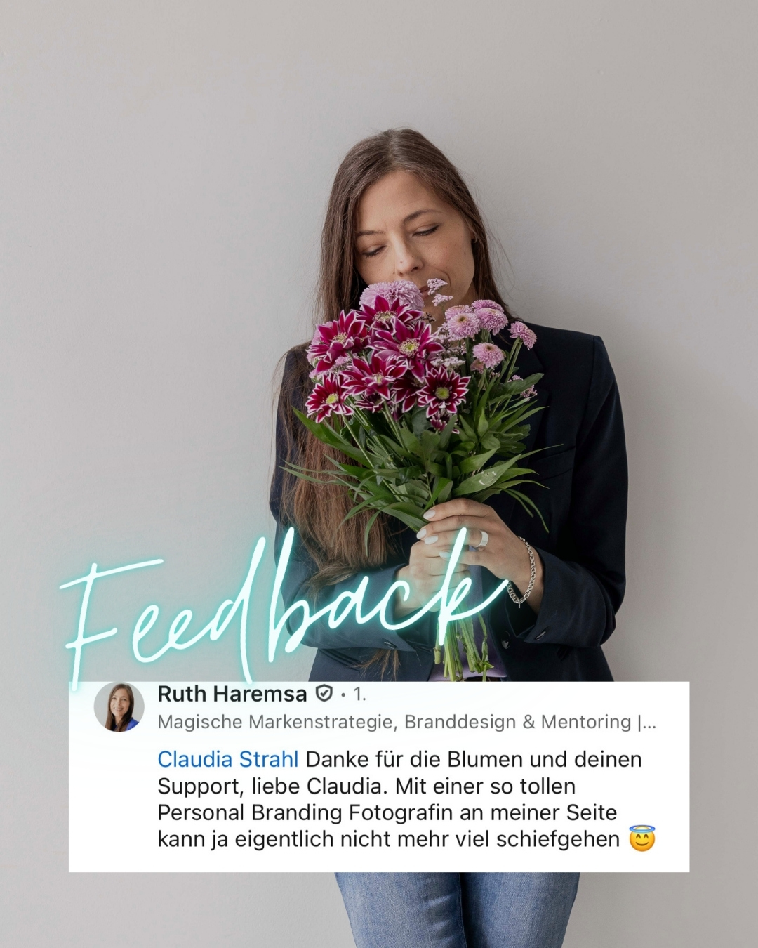 „Claudia hat es mit ihrer professionellen und mega sympathischen Art geschafft, dass ich mich für die Fotos aus meiner Komfortzone bewegte und das alles ohne mich künstlich verstellen zu müssen.